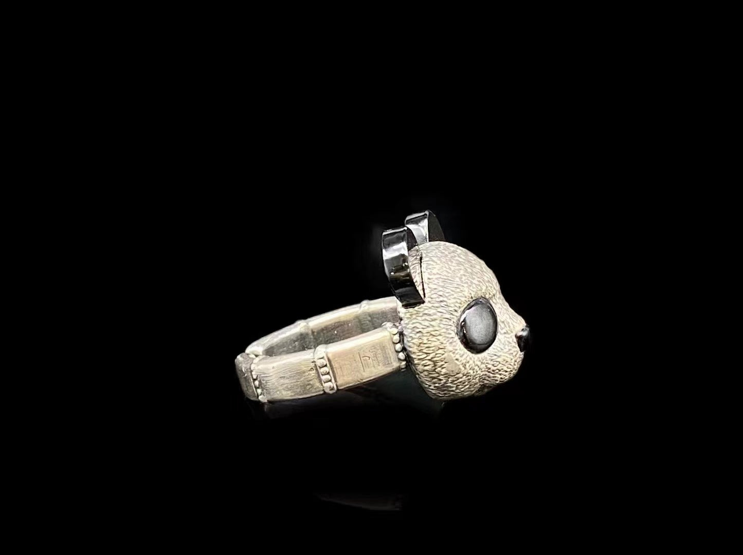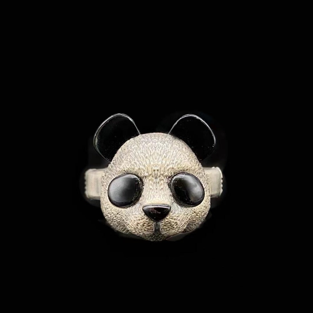 Introducing our meticulously handcrafted silver Panda ring, crafted with utmost precision and attention to detail, the ring showcases a lifelike depiction of a Panda, beautifully sculpted in high-quality sterling silver. Every contour, from the adorable facial features to the elegant fur patterns, is carefully crafted to capture the Panda's endearing character.