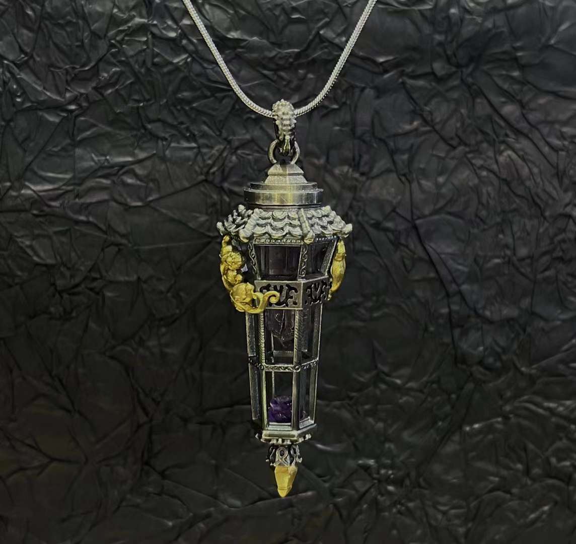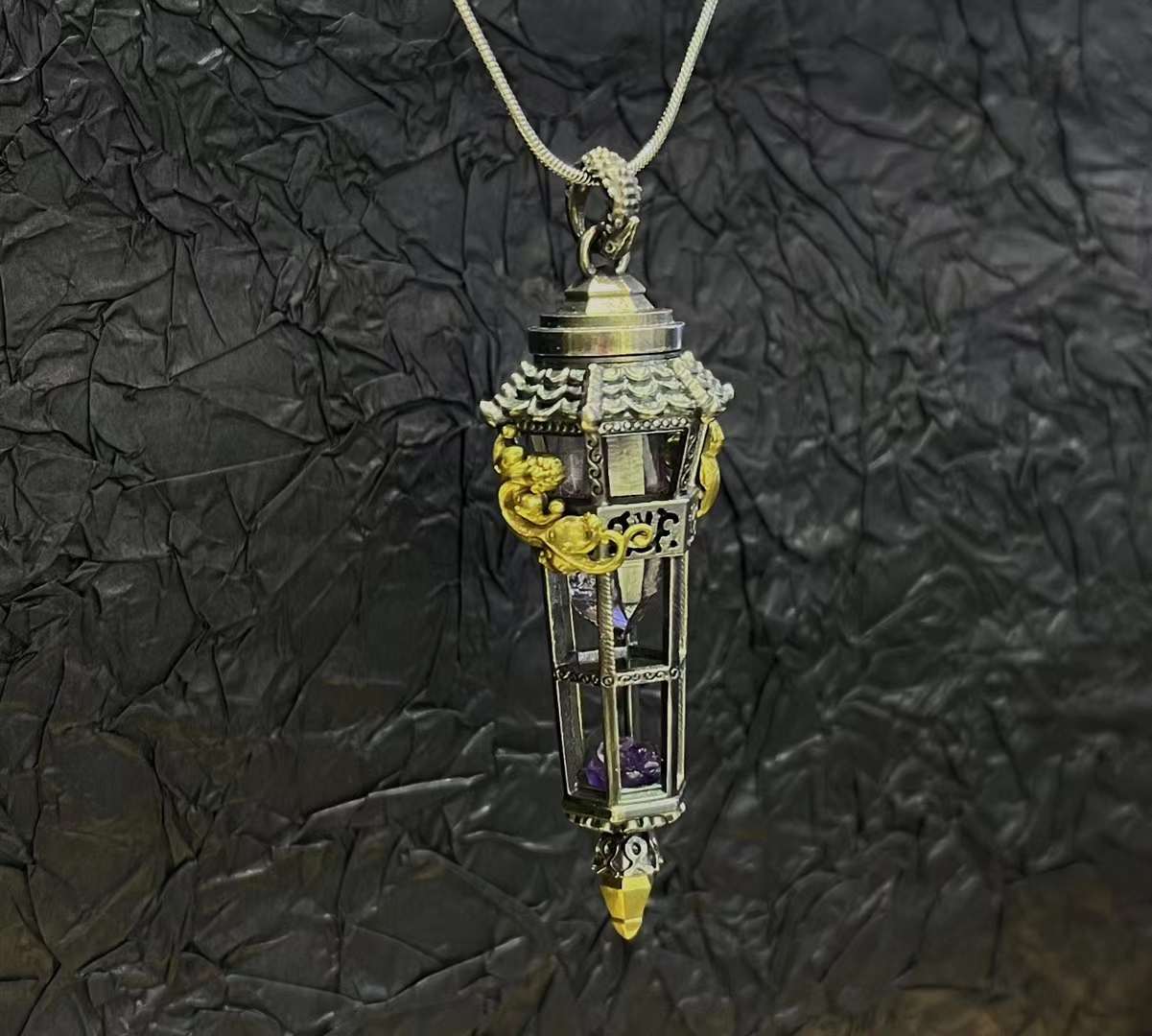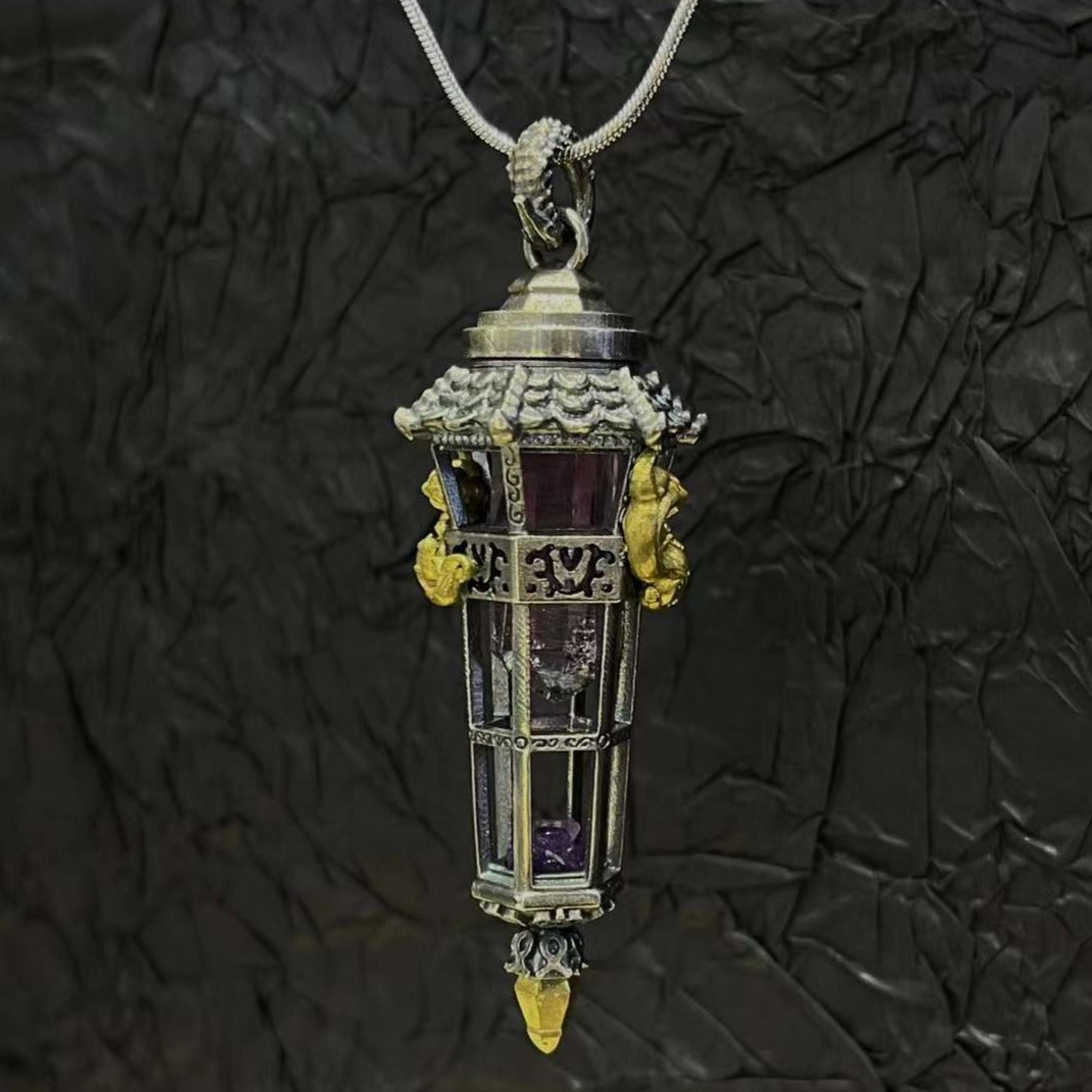 Introducing our exquisite handcrafted silver Tower Cage with Crystal, crafted with precision and adorned with mesmerizing crystals. Our artisans have crafted a majestic tower using intricate silverwork, each detail carefully placed to showcase their skill and dedication. Within this enchanting cage, a magnificent crystal has been chosen for its captivating beauty and energy. Quartz, amethyst, or citrine each bring their own charm to the piece. Symbolizing inner strength, the Tower Cage is a reminder to embrace one's own power and resilience. The perfect gift or statement piece, this wearable work of art offers an exclusive touch of elegance to any ensemble.
